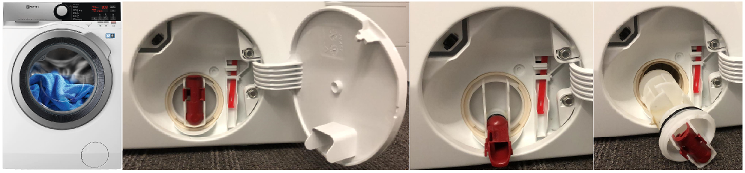 - Reinigen Sie die Pumpe und das Flusensieb, inklusive Pumpenrad (wenn das Pumpenrad sichtbar ist, drehen Sie es mit einem Stift zur Kontrolle und setzen Sie den Filter wieder ein). Achten Sie darauf, dass Sie den Filter richtig fest anziehen, um Undichtheiten zu vermeiden.