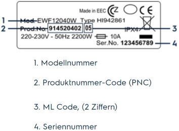Wenn die oben genannten Tipps nicht helfen, empfehlen wir Ihnen, einen Termin mit einem Techniker zu vereinbaren. Bitte wenden Sie sich an den Electrolux-Kundendienst. Bitte geben Sie die folgenden Gerätedaten an. Modell, Produkt (PNC / ML) und Seriennummer. Sie finden diese Informationen auf dem Typenschild des Geräts. Das Typenschild finden Sie auf der Rückseite des Kochfelds, auf der Garantiekarte oder in der Bedienungsanleitung unter "Technische Daten". Wenn Sie diese Daten nicht haben, kann uns der dreistellige Glascode helfen. Sie finden es in einer der hinteren Ecken neben dem Symbol.
