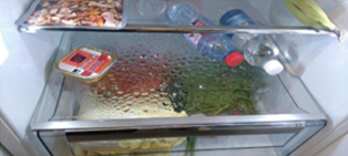 - Par exemple, si vous stockez beaucoup de légumes, comme de la salade verte, dans le réfrigérateur, l'humidité dans le réfrigérateur augmente et plus de gouttelettes d'eau se forment, en particulier sous le couvercle en verre du compartiment à légumes.
