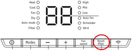 Kontrolllampe "Filterrückstellung" (filter reset) vom Klimagerät leuchtet, Filter Reinigung und Rückstellung der Anzeige