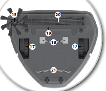 - Les compartiments des batteries sont situées sous le robot (voir n°21 sur l'image en-dessous à gauche).