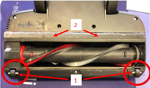 - Si les deux roulettes avant sont présentes et intactes (voyez n°1 sur la figure ci-dessous).