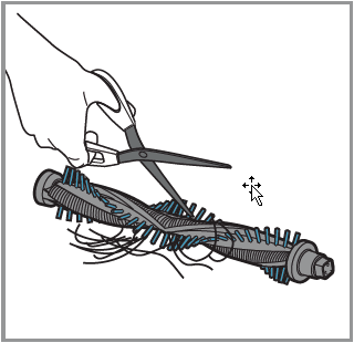 Verwenden Sie einen Kamm oder eine Schere um Schmutz, Haare und Fasern, die an der Bürstenwalze haften, einfach zu entfernen.