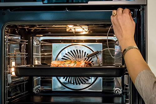 Der Speisenthermometer ist ein praktisches, integriertes Kochthermometer, mit dem Sie Ihren Kochfortschritt in Echtzeit verfolgen können. Es ist einfach zu bedienen und gibt Ihnen die Gewissheit, dass Ihr Essen immer richtig gegart ist. Sie finden diese Funktion bei ausgewählten Electrolux Ofenmodellen.